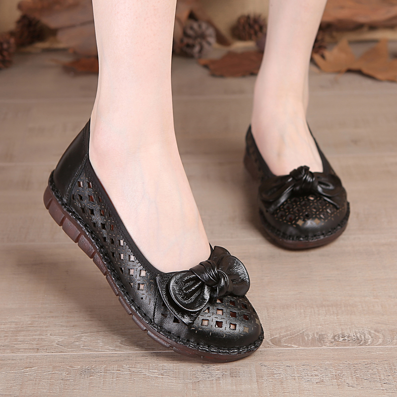 女民族风妈妈鞋 镂空平底包头凉鞋 牛皮 真皮软底舒适女鞋 闰月新款
