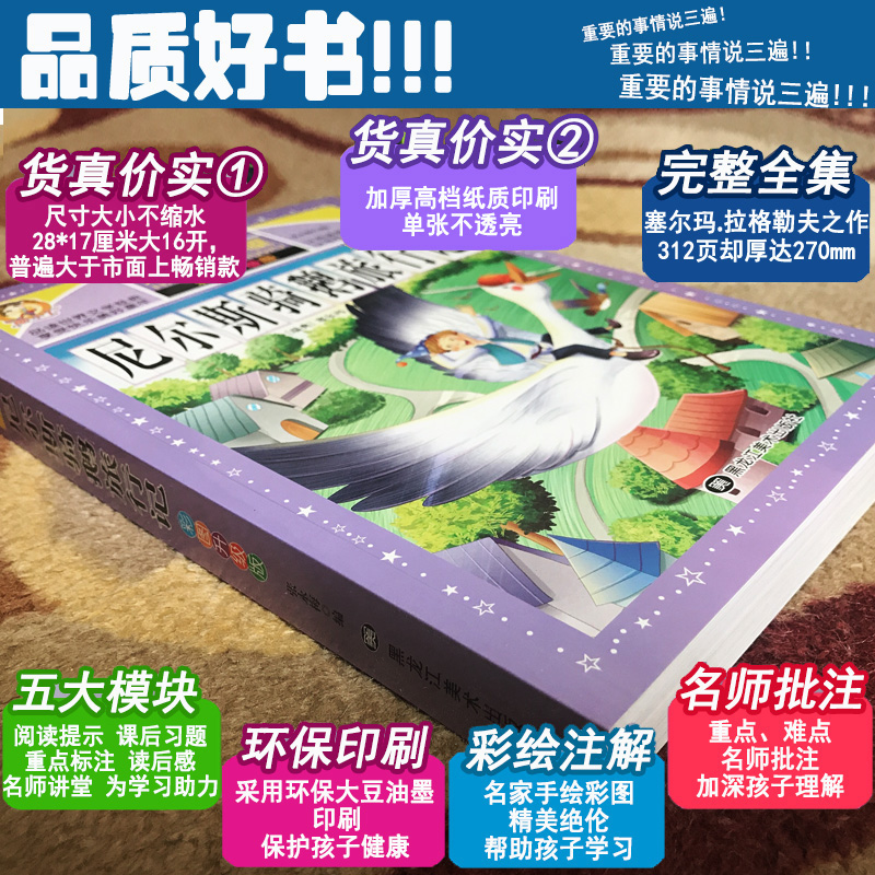 必尼尔斯历险记 尼尔斯骑鹅旅行记 原著全译本 小学生青少年版 尼尔斯企鹅旅游记骑鹅去旅行威尼斯尼尔斯骑旅行记 六年级下册读正版