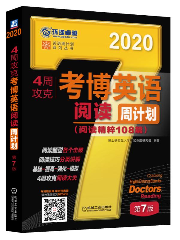 4周攻克考博英语阅读周计划 博士研究生入学考试命题研究组 阅读精粹108篇 2020 博库网 第7版 环球