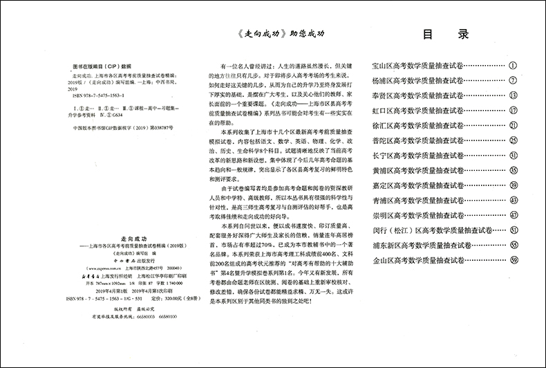 上海市各区高考考前质量抽查试卷精编 2019年版 仅试卷 走向成功二模数学 高三期末考试摸底卷高三二模卷数学 上海高考二模卷数学