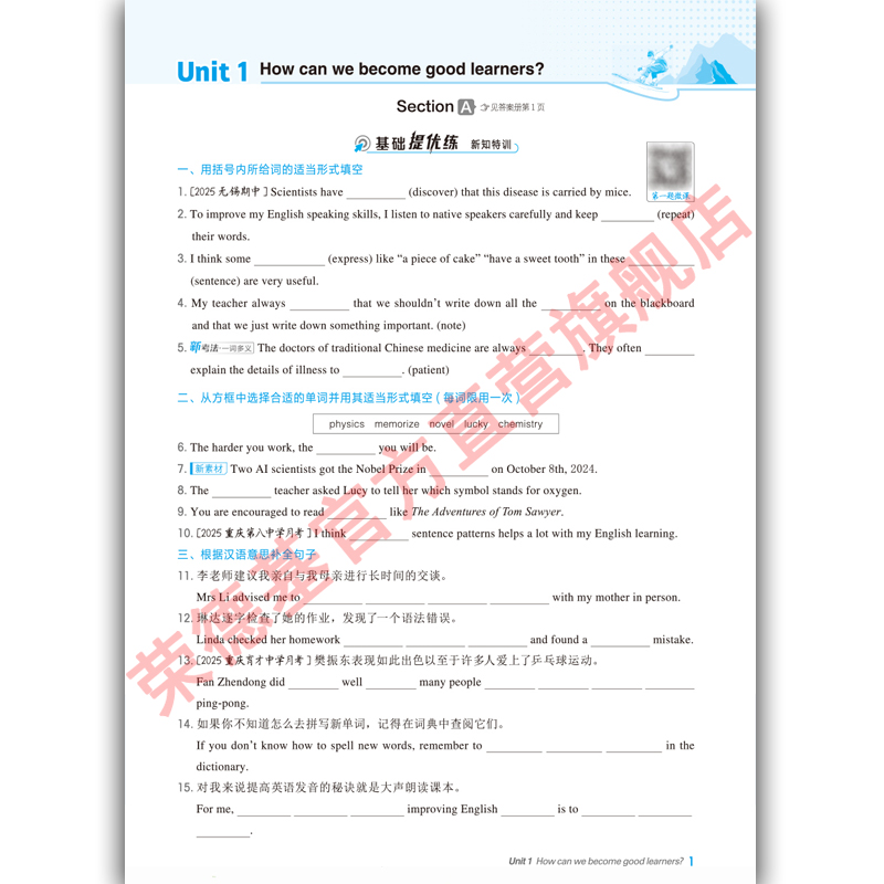 2025秋新版 课外配套同步练习册 典中点九年级全一册英语人教版