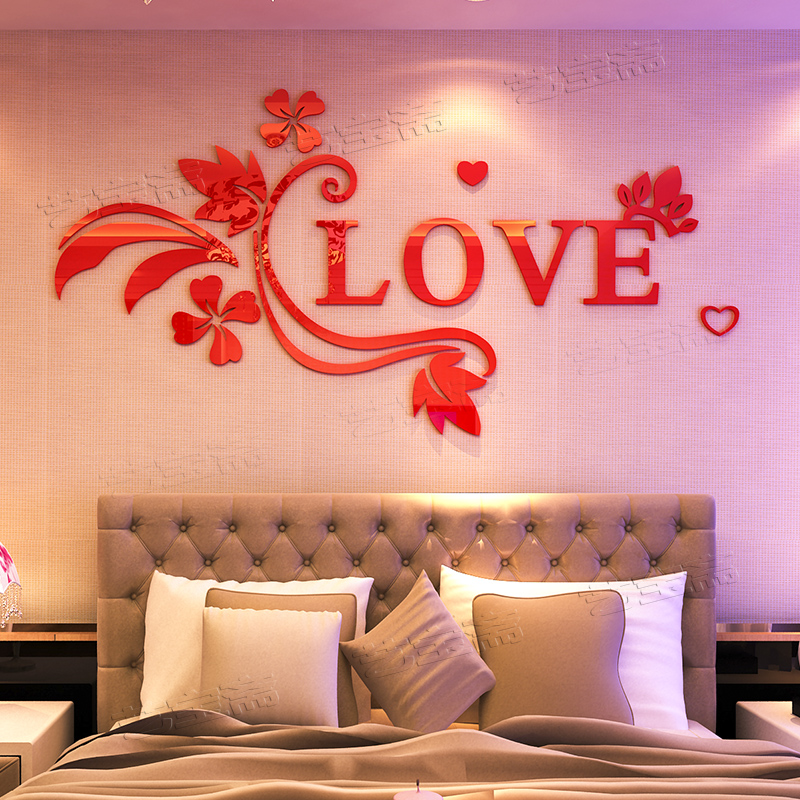 love温馨水晶亚克力3d立体墙贴画贴纸客厅床头卧室墙壁房间装 饰品