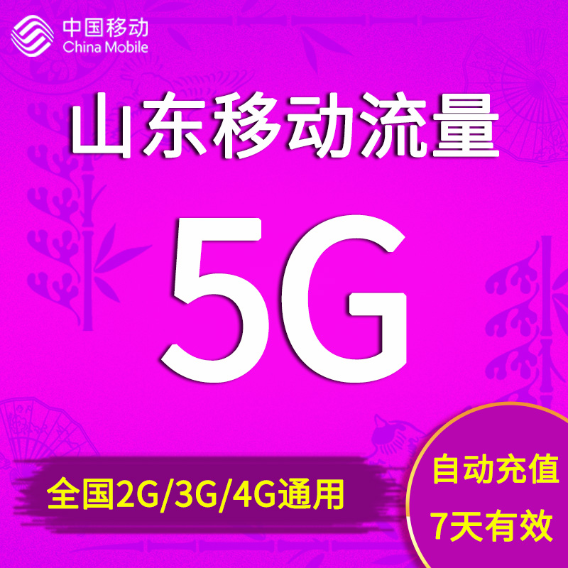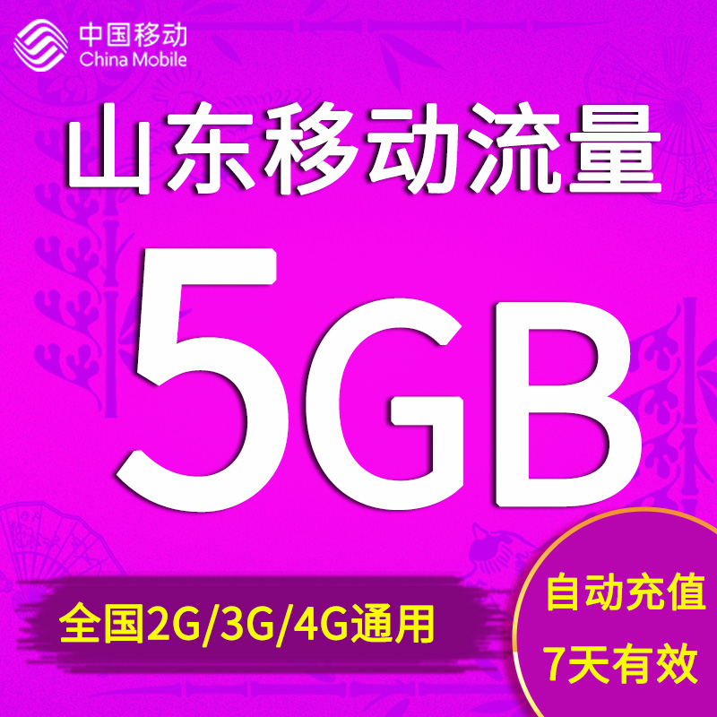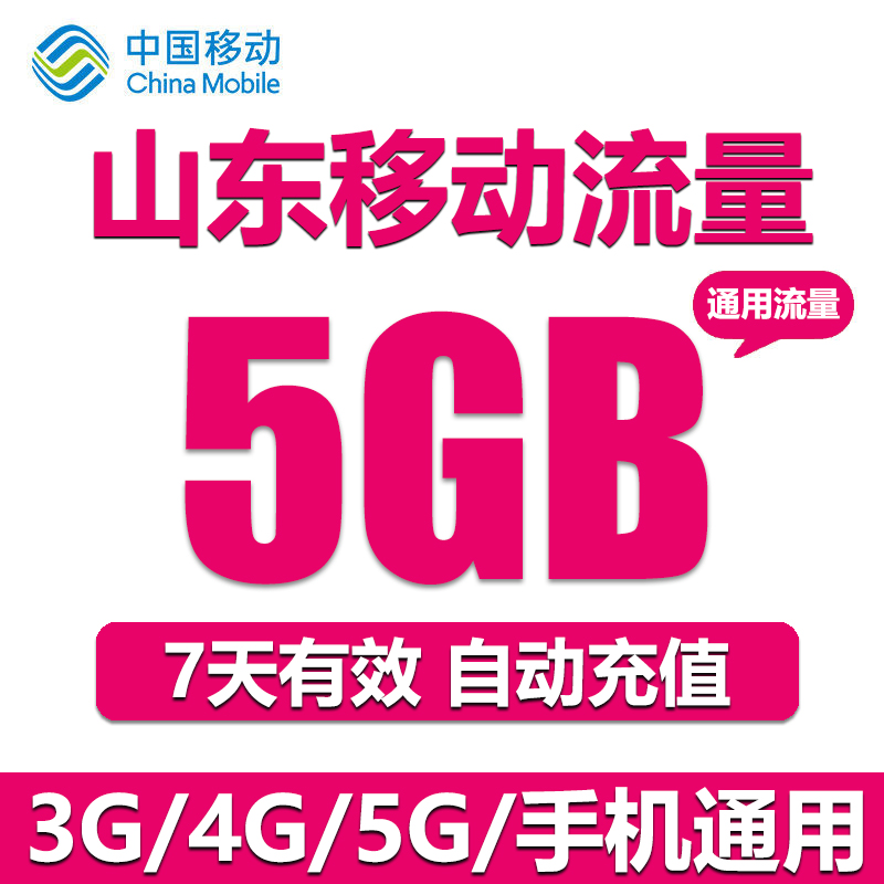 山东移动流量充值5GB全国3G4G5G通用流量包加油包7天包 自动充值