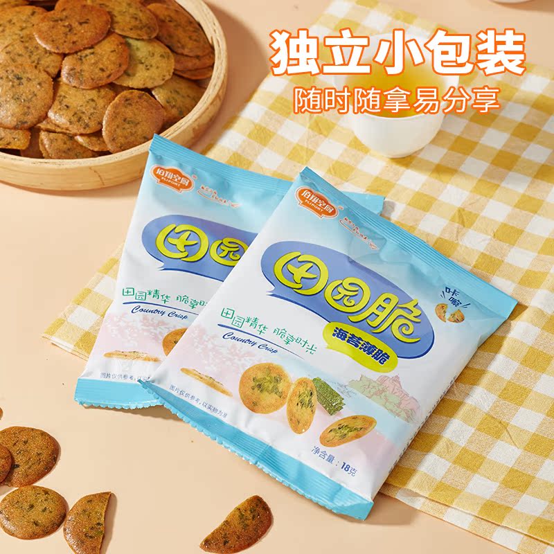 满99减50 5薄脆小圆饼干飞机航空零食解馋 佰翔空厨海苔田园脆18g
