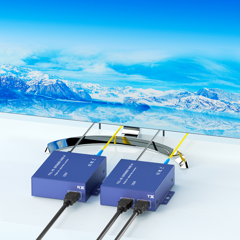 HDMI光端机音视频4K高清光纤收发器带鼠标键盘转光纤延长器转换器20公里监控电脑主机分屏器分配放大器传输器