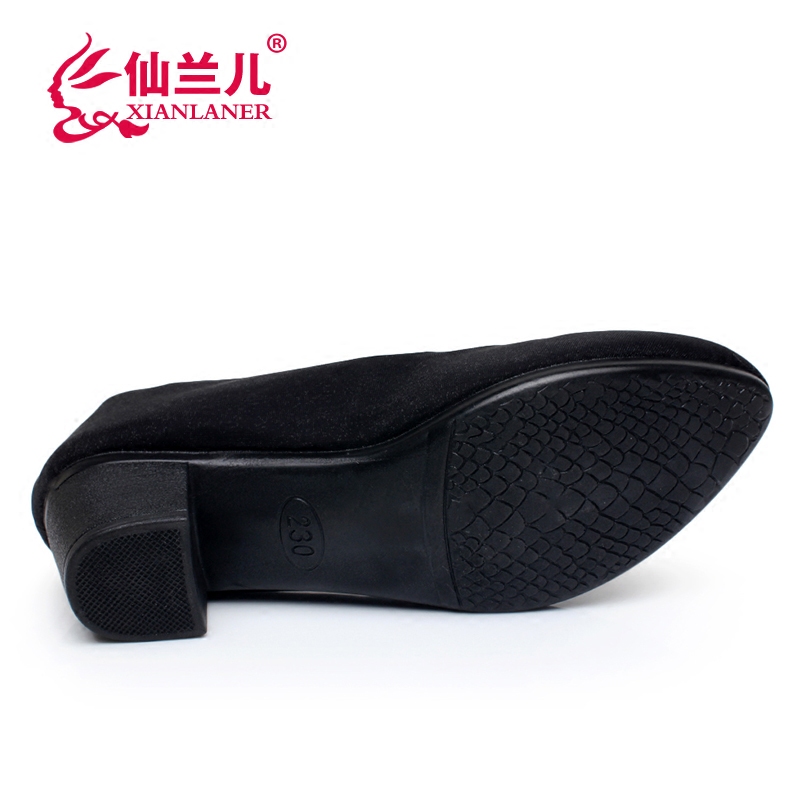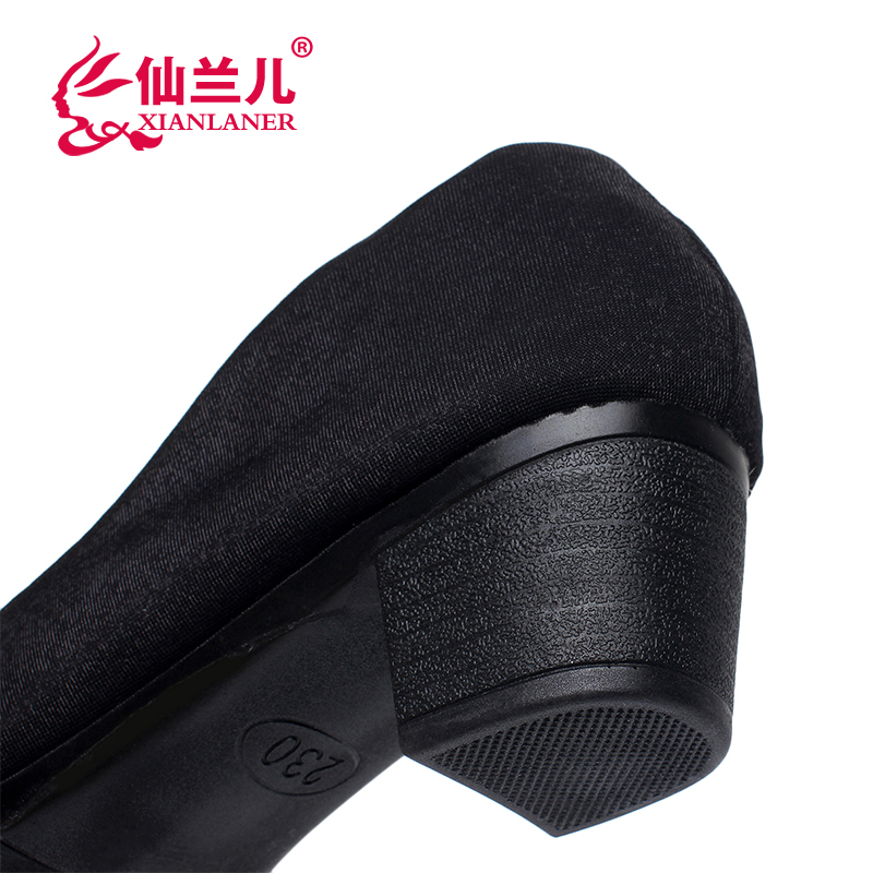老北京布鞋 春季 黑粗跟透气单鞋 女浅口中跟OL职业鞋 简约尖头工作鞋