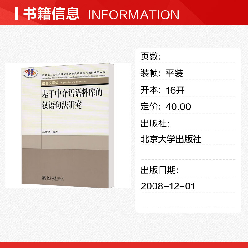 等 著 北京大学出版 汉语句法研究 社 图书籍 赵金铭 新华书店正版 基于中介语语料库 语言文字文教