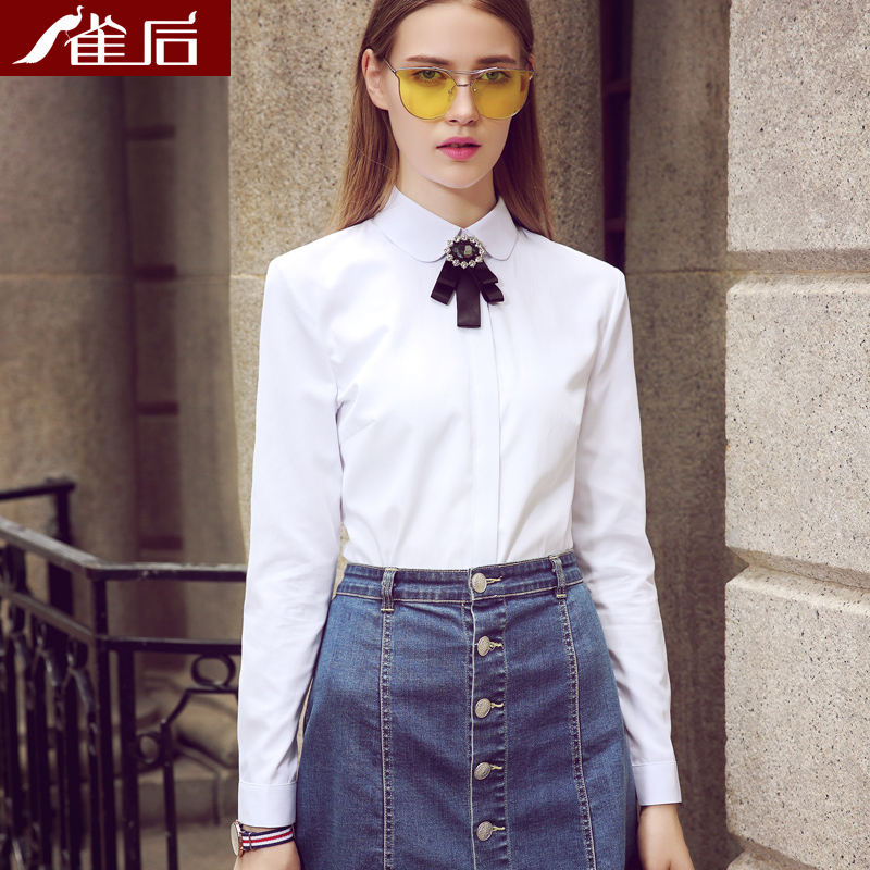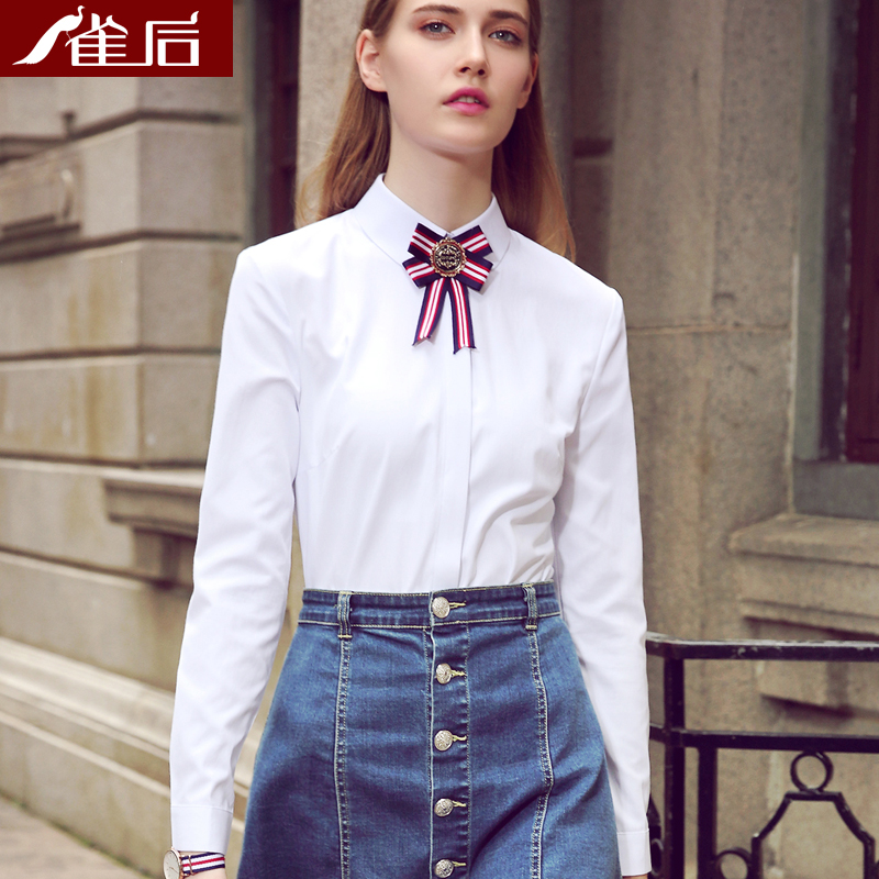 OL打底保暖长袖 职业修身 衬衣女 加绒加厚一体绒白色衬衫 雀后秋冬装