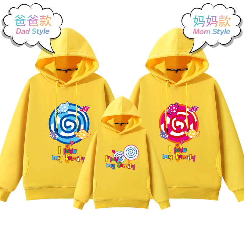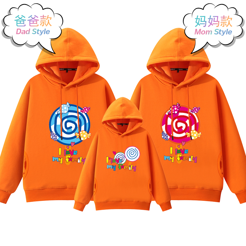 卫衣秋装 大码 韩版 母子母女装 红色上衣 一家三口四口家庭装 亲子装