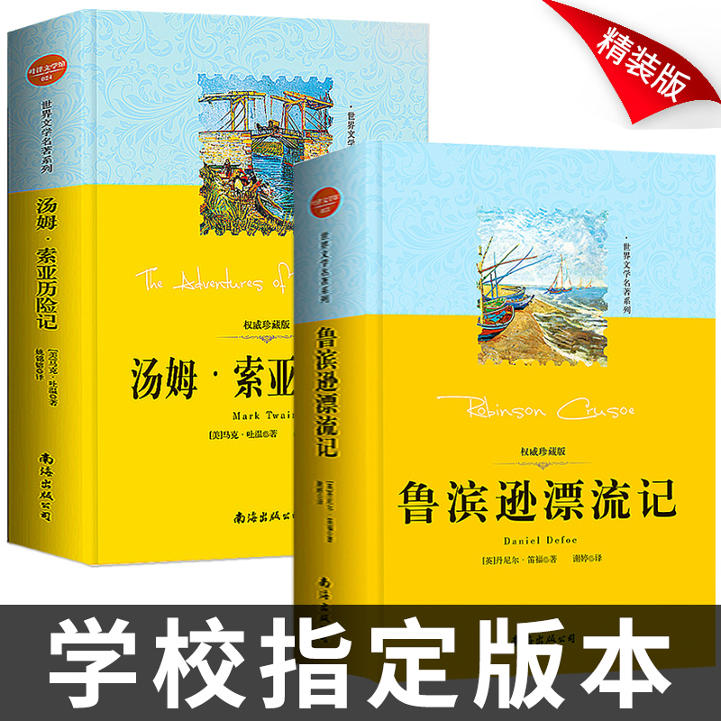课外阅读书籍世界名著鲁滨孙6年级经典 2册完整版 初中生小学生版 推荐 书目 六年级下册必读全套鲁滨逊漂流记和汤姆索亚历险记原著正版