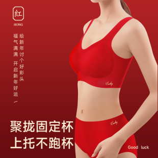 无痕本命年内衣内裤 女士文胸红色结婚新娘属马年衣服礼物2026 套装