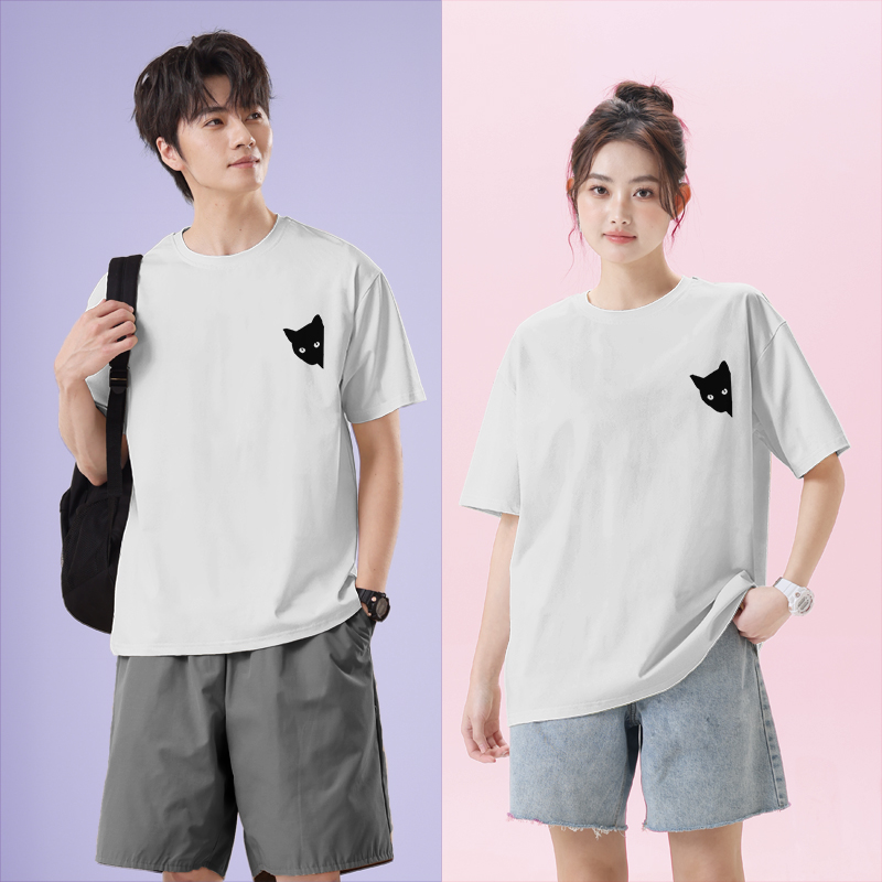 体恤0015设 圆领夏季 无界 T恤男女小清新简约新款 好奇猫咪探头短袖