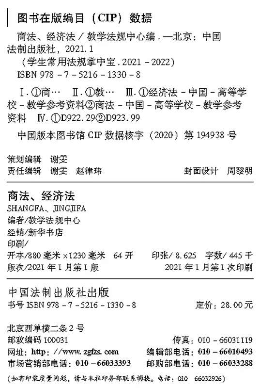 考试真题 学法导航 经济法 方便携带 中国法制出版 64开 商法 学生常用法规掌中宝 案例索引 正版 社 2021—2022