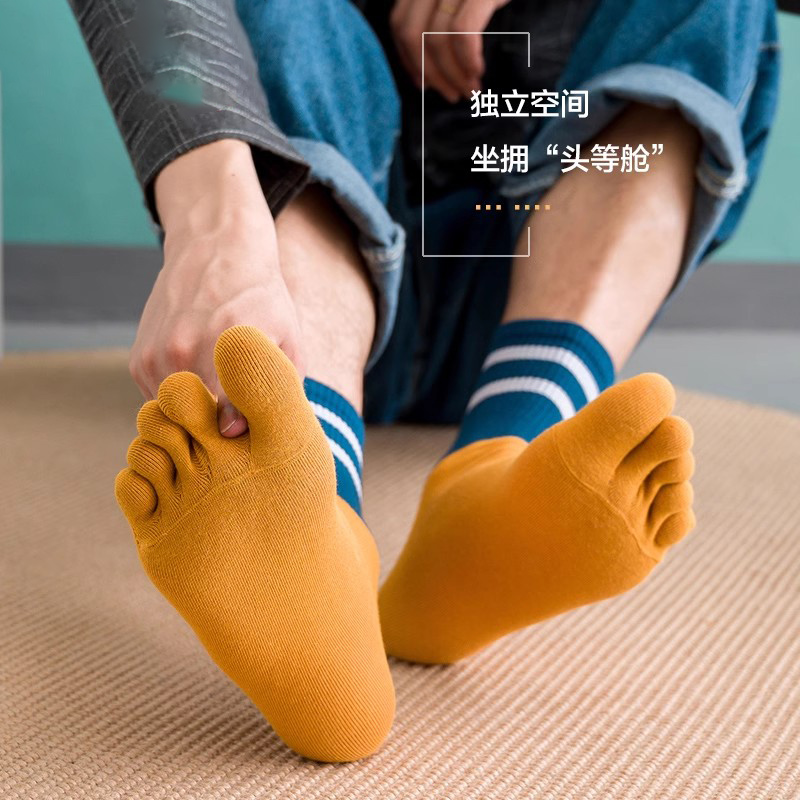 五指袜子男中筒袜秋冬纯色棉袜吸汗防臭运动ins潮袜四季 运动分趾