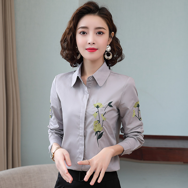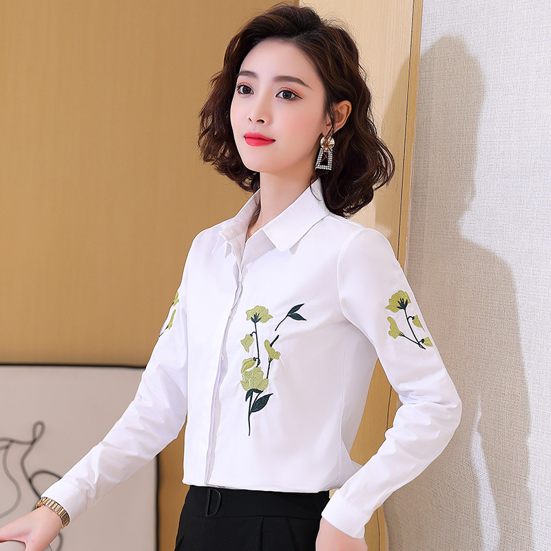 职业装 纯棉白衬衫 新款 2025秋季 上衣气质绣花加绒衬衣百搭潮 女长袖