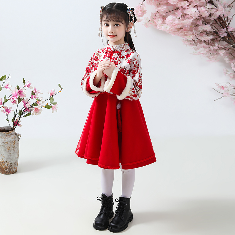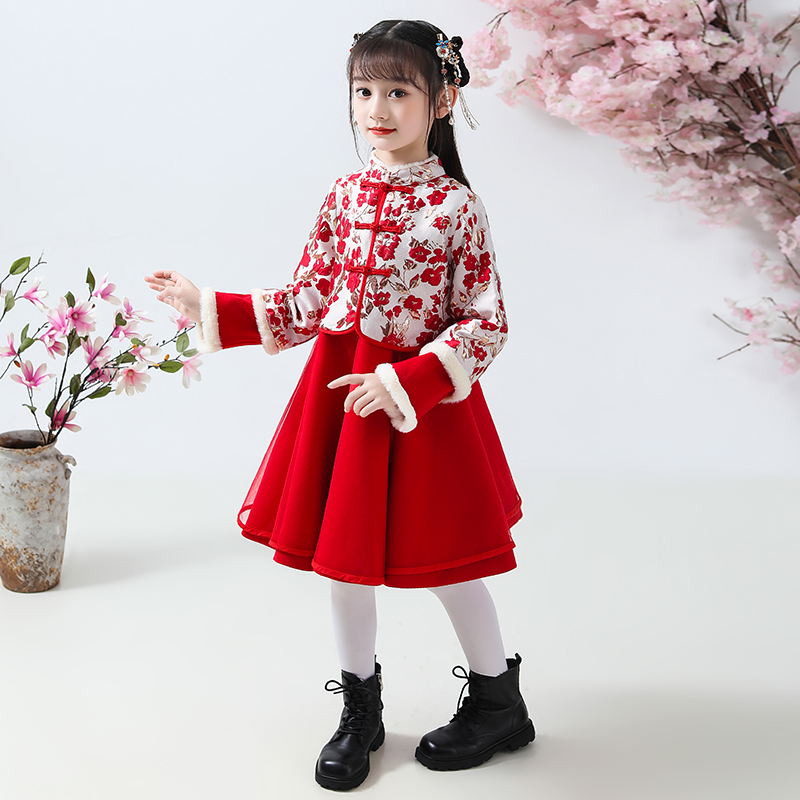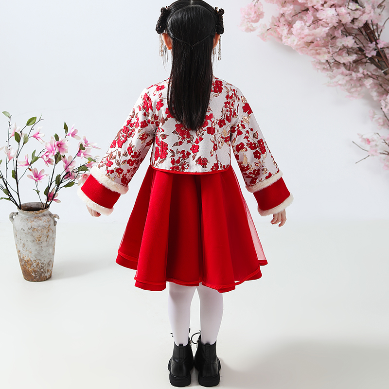 中国风汉服宝宝新年冬装 女童唐装 儿童古装 加绒夹棉套装 拜年服 冬款