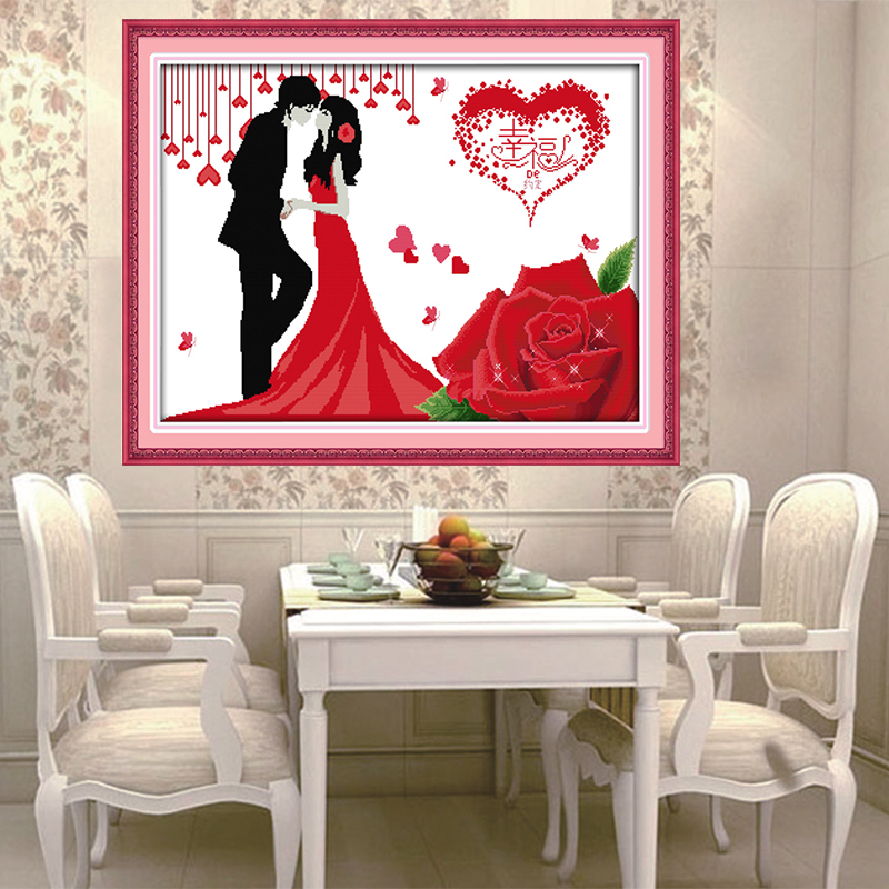 千朵印花满珠绣车饰车挂钥匙扣十字绣套件心心相印两心相悦送爱人