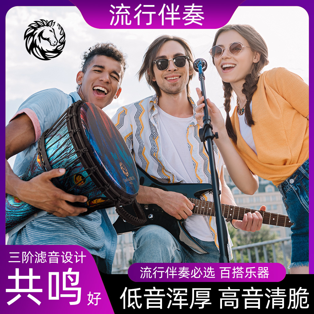 乾韵高颜值孔雀紫12寸非洲鼓专业碳纤维手鼓成人初学儿童演奏丽江