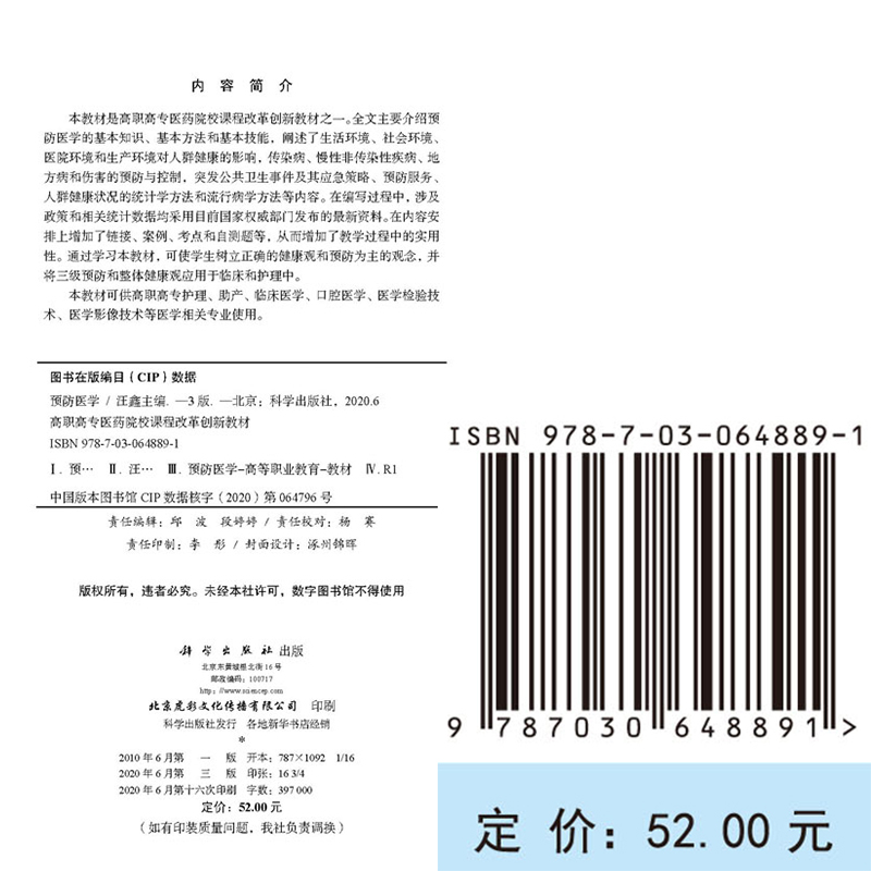 现货预防医学第三版 社9787030648891 3高职高专医药院校改革创新教材供护理助产临床医学检验技术等医学相关专业使用科学出版