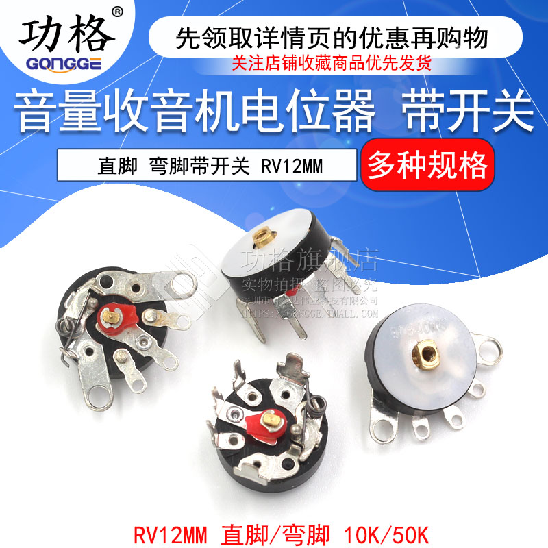 B103 音量电位器收音机电位器 RV12MM 弯脚带开关B50K B10K 直脚