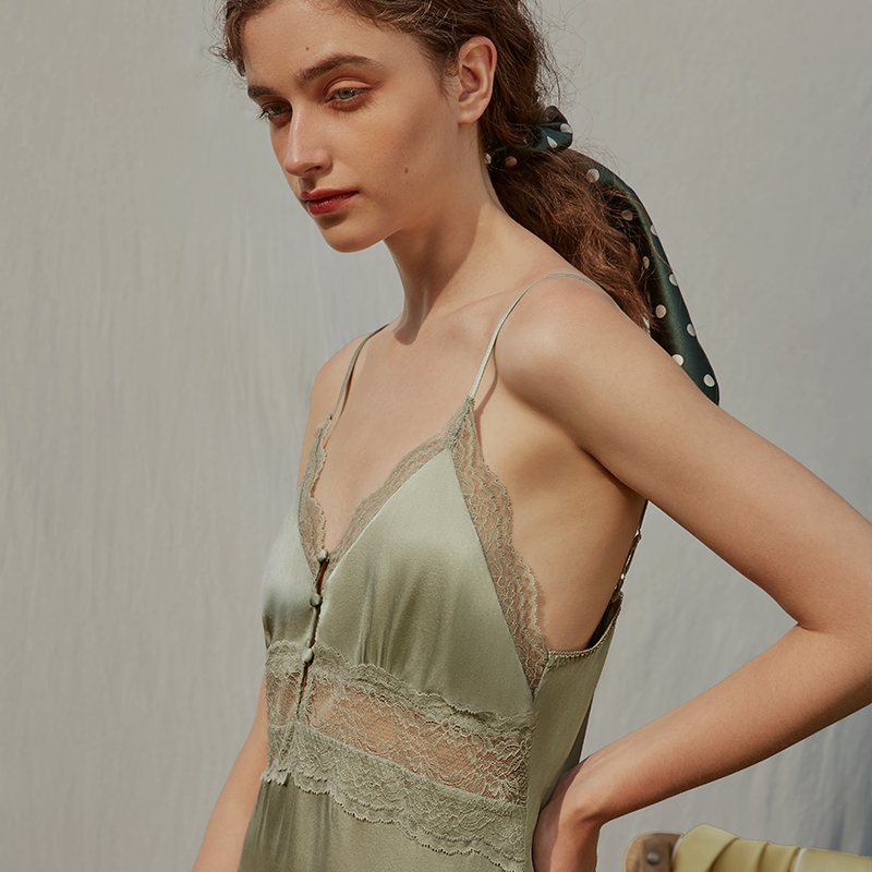 2025新款 性感冰丝睡袍纯欲风高级感蕾丝吊带睡衣 睡裙女春秋夏薄款