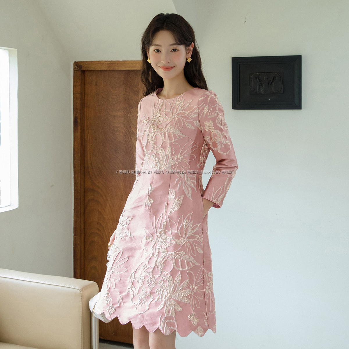 奢华名媛连衣裙 粉色碎花名媛旗袍改良版 日常可穿中国风法式 年轻款