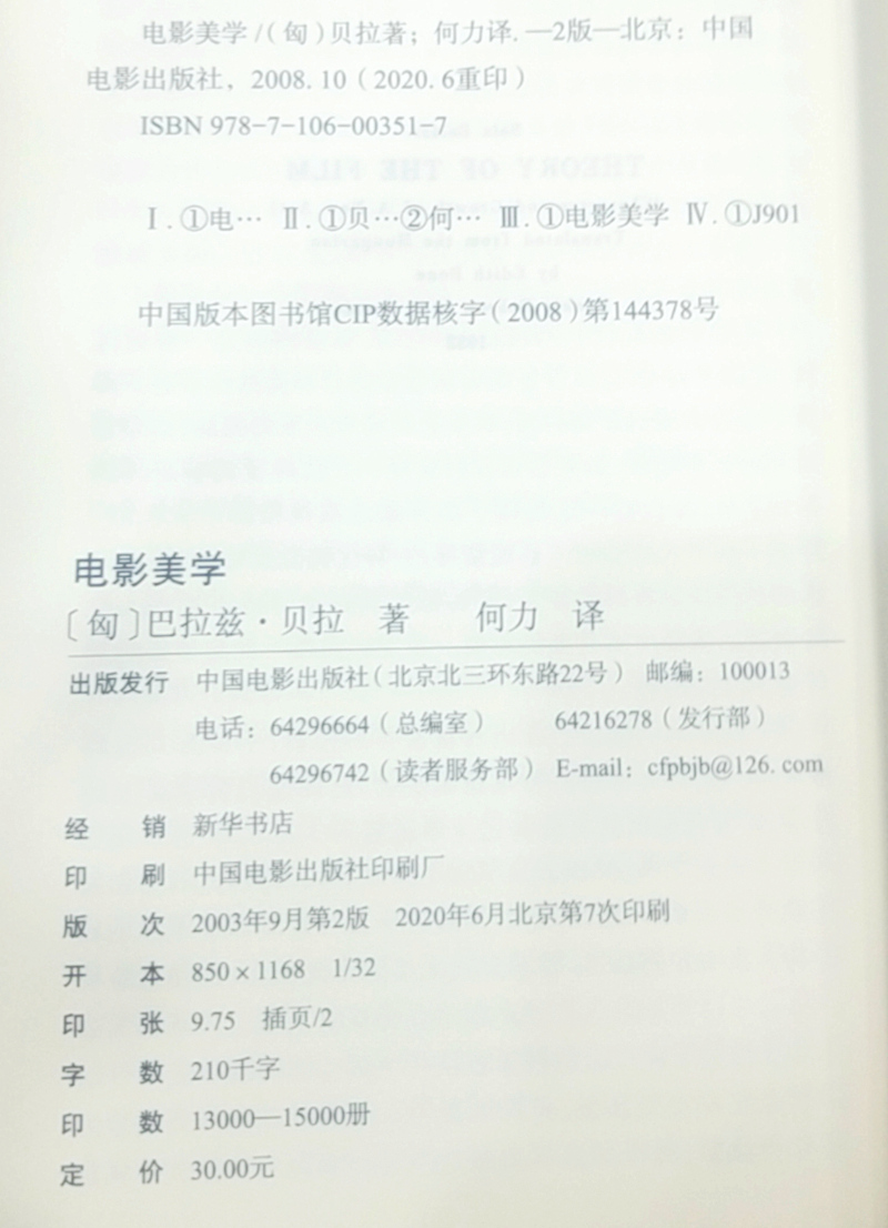 电影美学 电影艺术形式 世界电影理论译丛 著何力译中国电影出版 发展过程电影艺术本性无声电影艺术经验总结 贝拉巴拉兹 现货正版