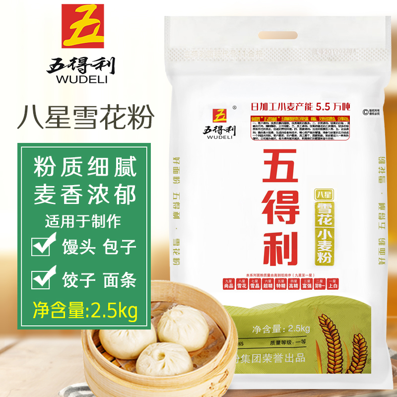 五得利面粉八星雪花粉2.5kg5斤家用面粉多用途麦芯粉馒头花卷饺子