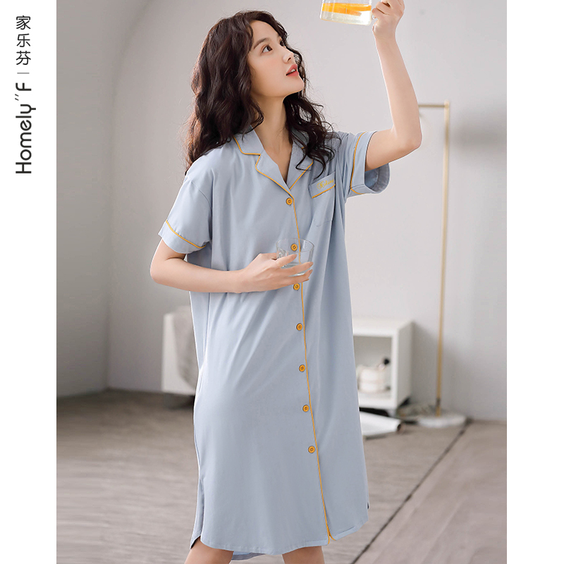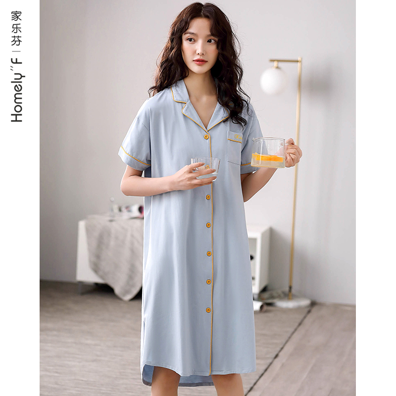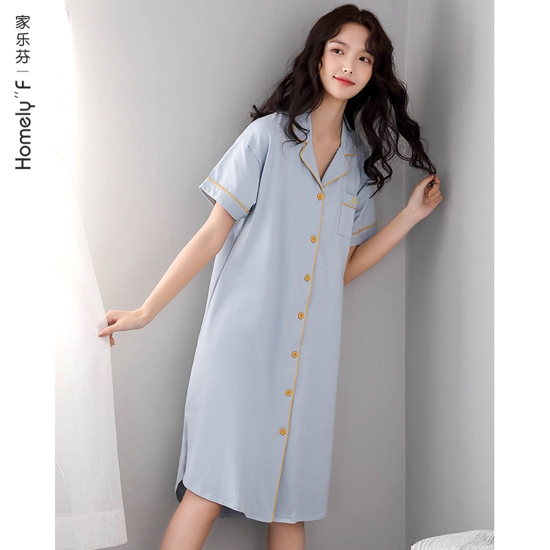 睡衣家居服女生夏天性感连衣裙 可爱短袖 芬腾睡裙女士夏季 纯棉薄款