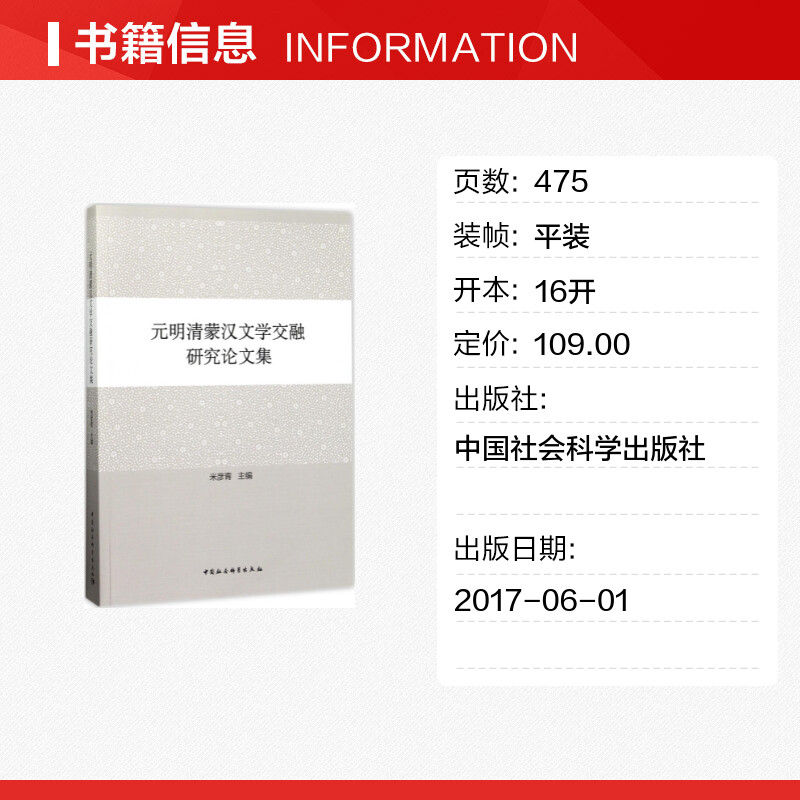 文学评论与研究文学 社 米彦青 中国社会科学出版 图书籍 新华书店正版 文学理论 著 主编 明清蒙汉文学交融研究论文集 元