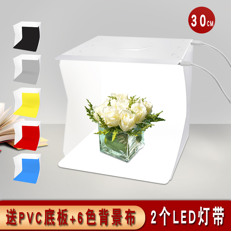 30cm柔光箱摄影棚套装 LED补光灯箱折叠迷你简易微型珠宝首饰美食玩具拍照道具摆件摄影棚摄影台 小型便携式