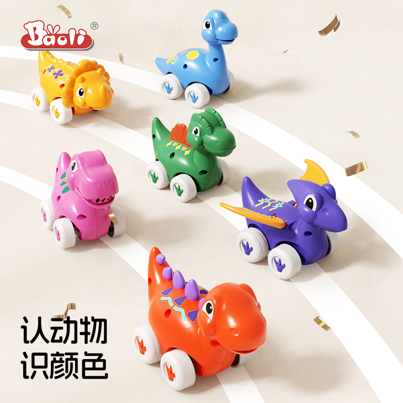 宝丽恐龙玩具套装 儿童霸王龙三角龙仿真动物模型宝宝回力小车男孩