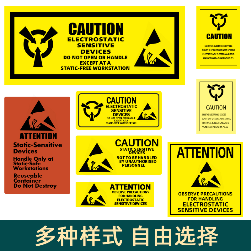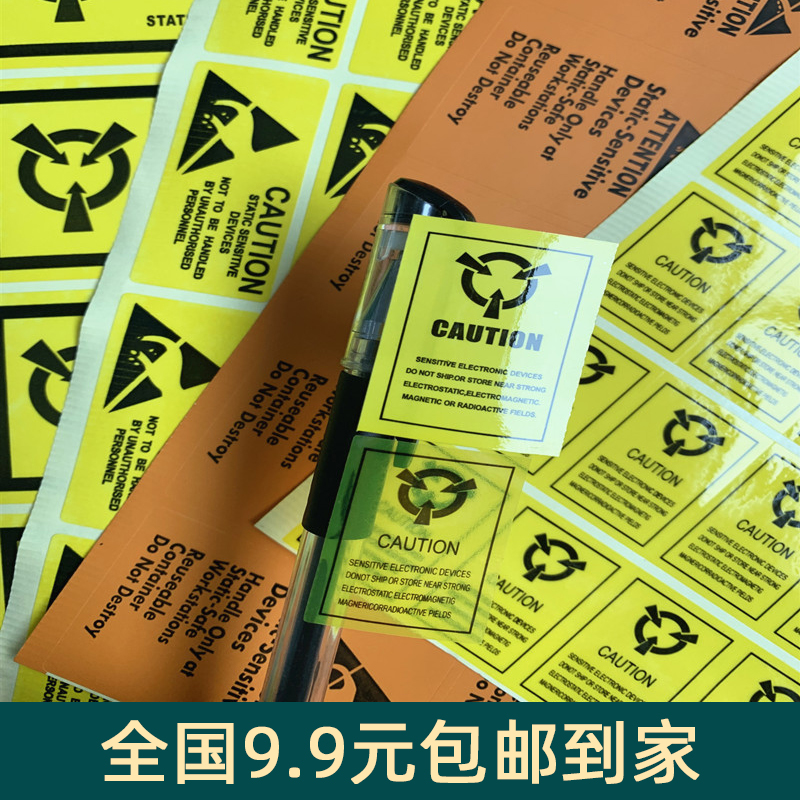 海学岚 CAUTION警示防静电标识标签不干胶贴纸防水ESD标志封口贴