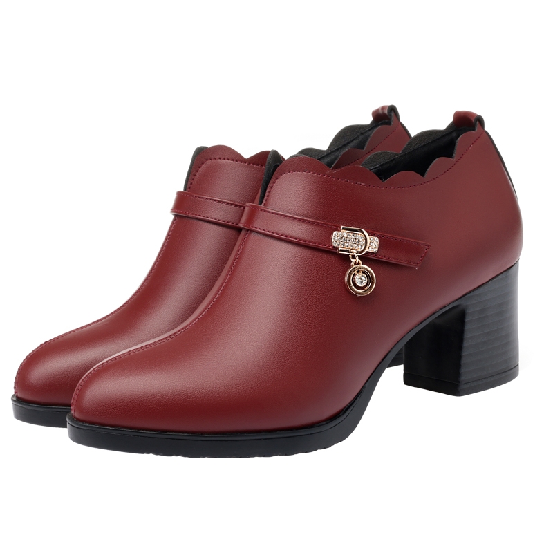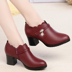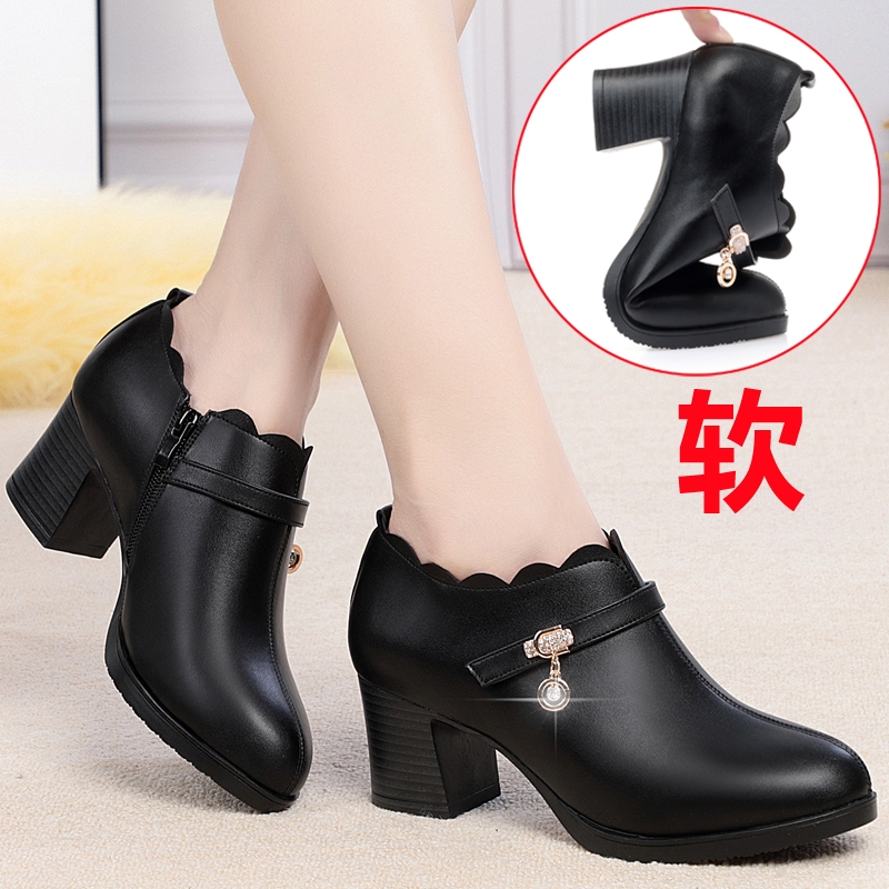 中年中跟中品牌1025 单鞋 胖妈妈鞋 宽胖脚软底粗跟舒适女秋冬季