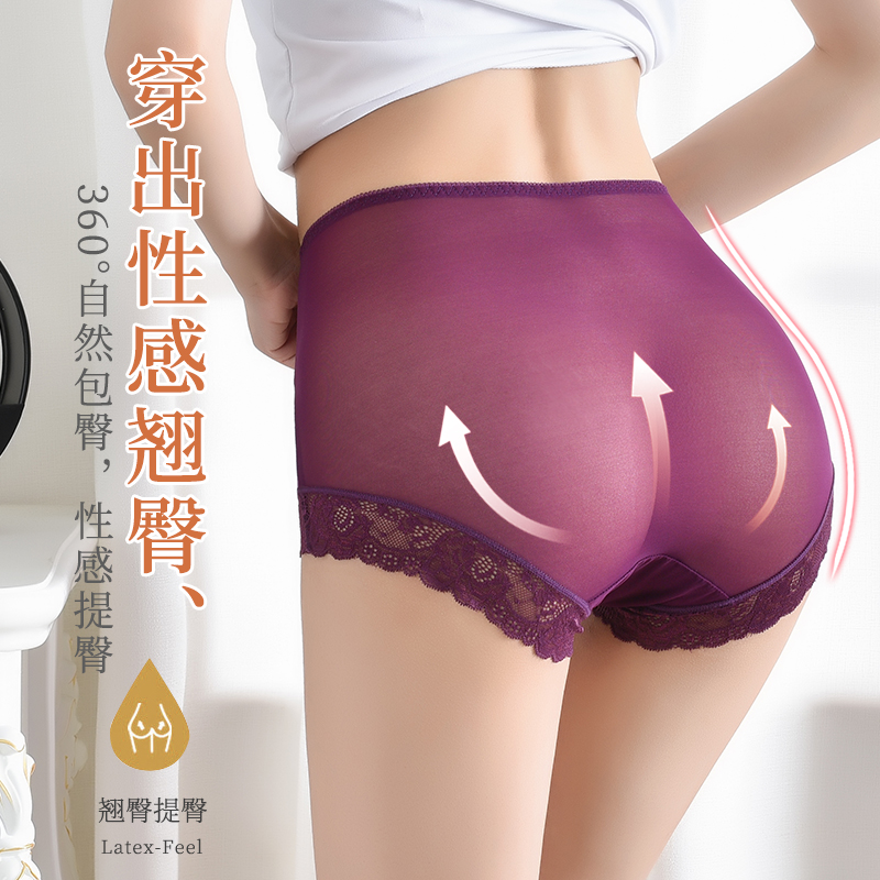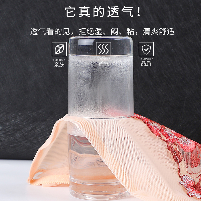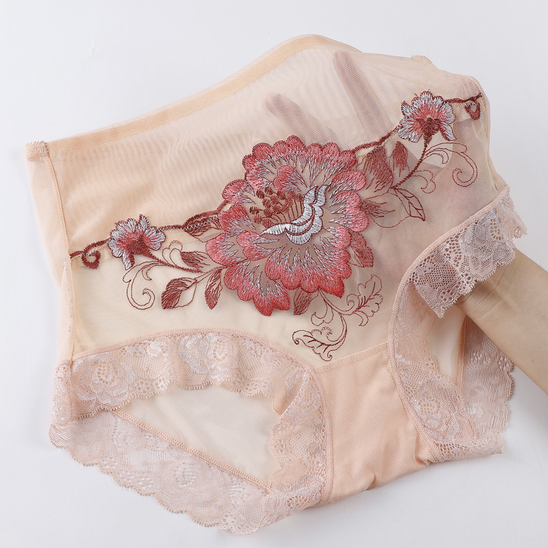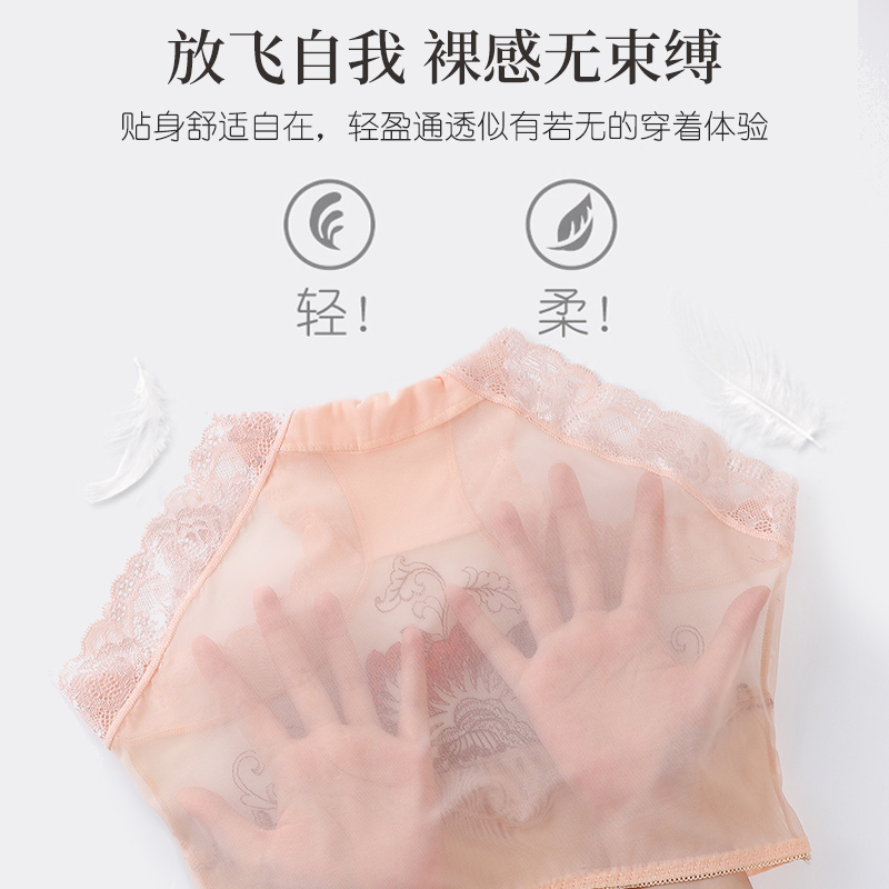 头 透气无痕性感透明网纱刺绣三角裤 高腰蕾丝内裤 女收腹提臀大码