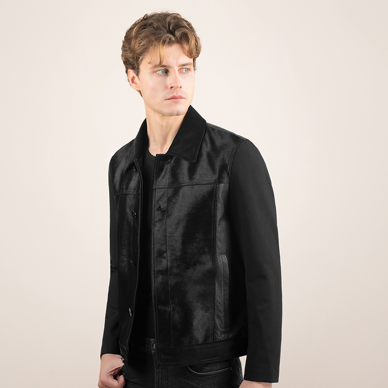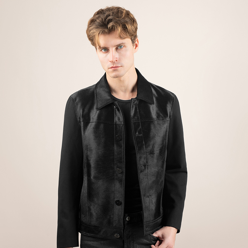 ICH 复古休闲夹克外套 MODE高级质感设计小众立领皮衣外套机车美式
