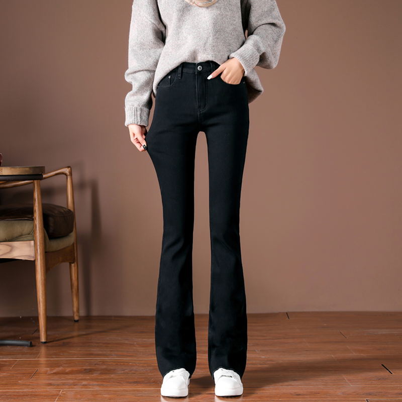 显瘦纯黑色长裤 微喇裤 子 女高腰2025秋冬垂感修身 加绒牛仔小喇叭裤