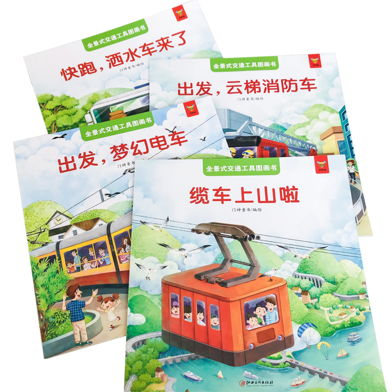 4册全景式 开车出发系列坐电车出发3 开车去兜风绘本 5到6岁儿童故事书宝宝汽车火车云梯消防车幼儿男孩书籍pp 交通工具图画书