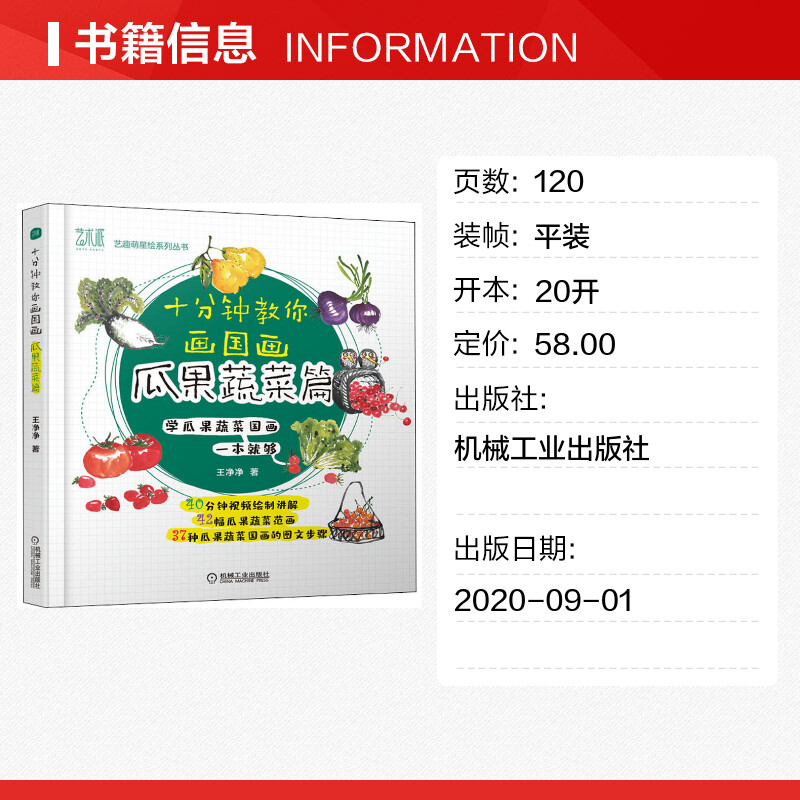 瓜果蔬菜篇 王净净 机械工业出版 新华文轩 社 新华书店旗舰店文轩官网 十分钟教你画国画 书籍 正版