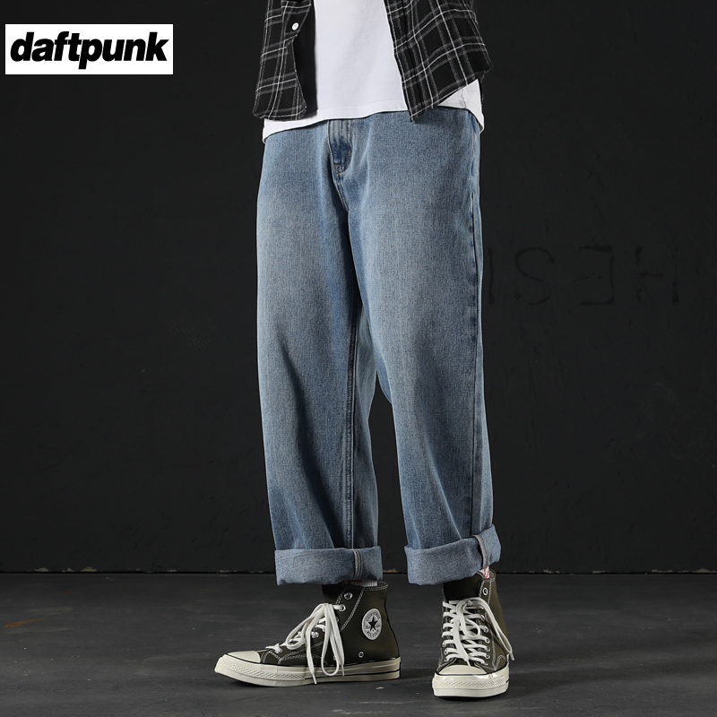 潮流裤 港风牛仔裤 韩版 休闲直筒宽松阔腿裤 子 男潮牌胖子加肥加大码