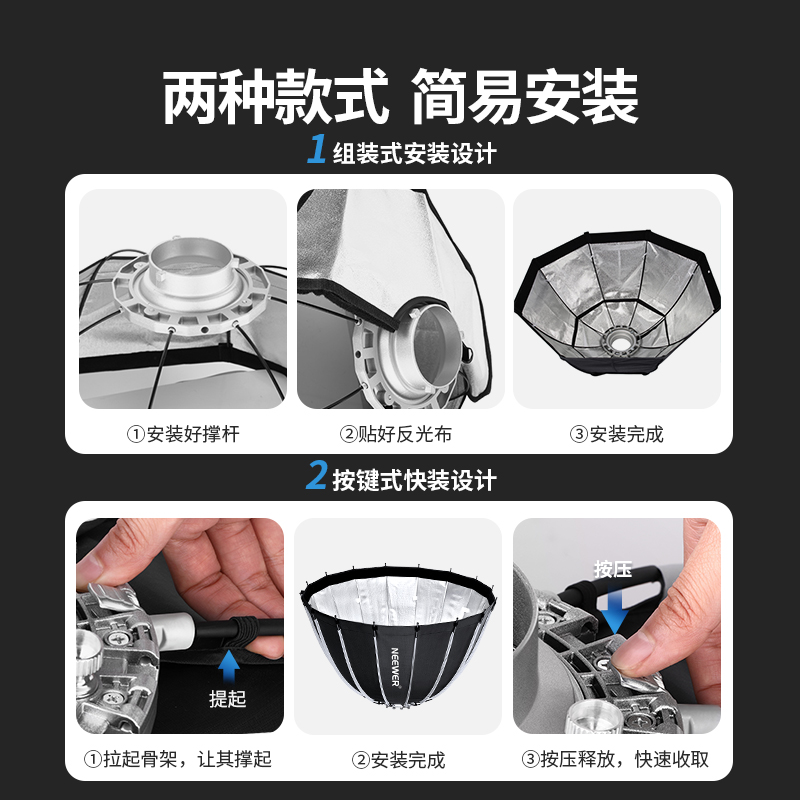 NEEWER纽尔闪光灯机顶八角柔光箱摄影补光灯柔光罩十六边形深口抛物线格栅网格蜂巢保荣口雷达罩灯笼罩快装
