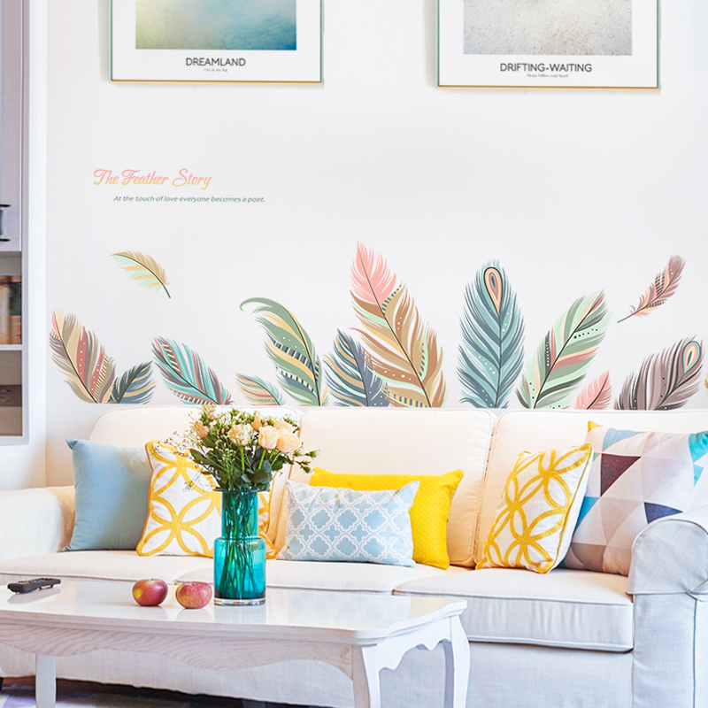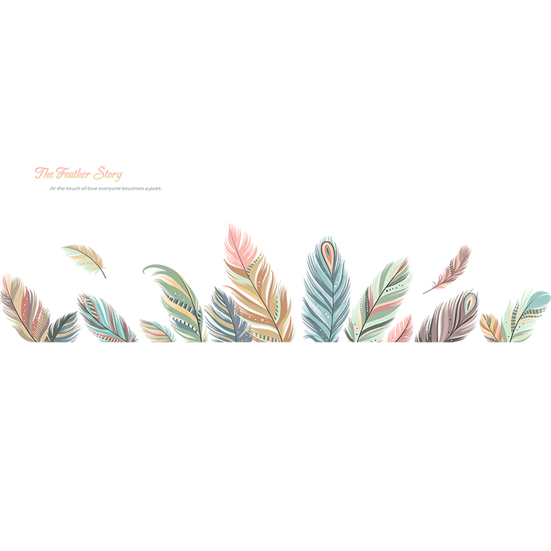 清新羽毛贴画电视背景墙贴纸自粘卧室走廊玄关腰线装 饰踢脚线墙贴