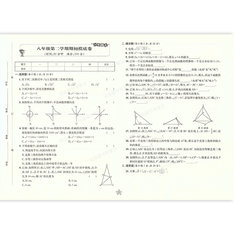上海沪教初中初二教辅同步练习册试卷期中期末单元 第7版 测试卷全套 一卷搞定六七八九年级下册语文数学英语物理化学 新版