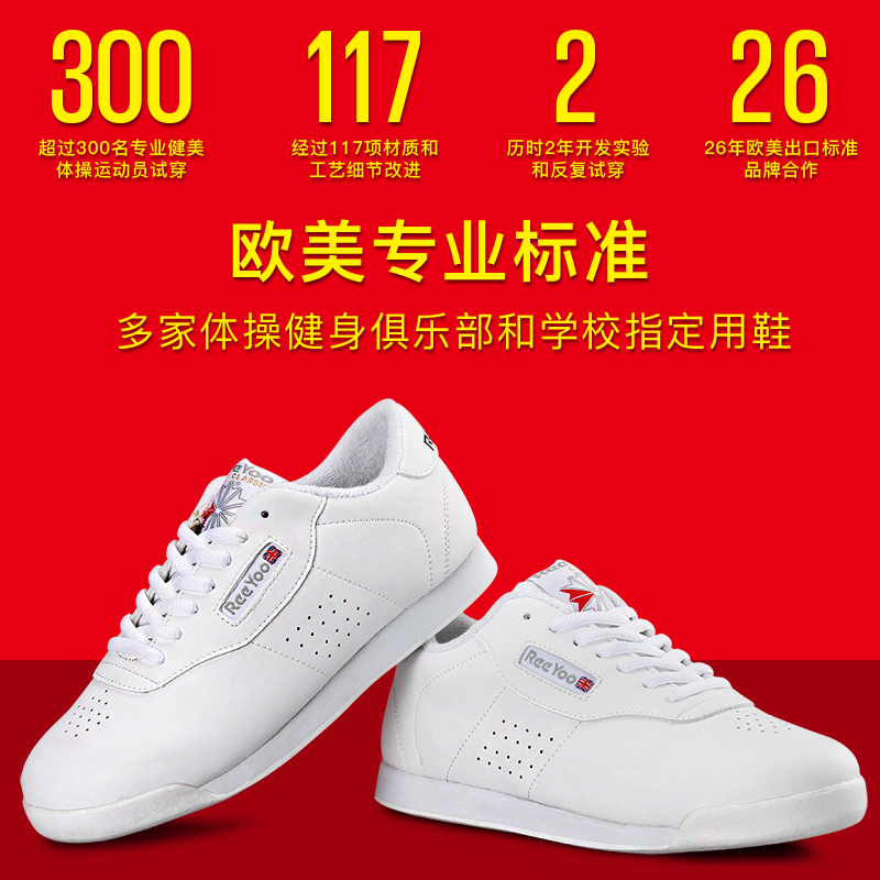 女款 竞技啦啦操鞋 成人软底广场舞白色健美操鞋 子舞蹈鞋 训练比赛鞋