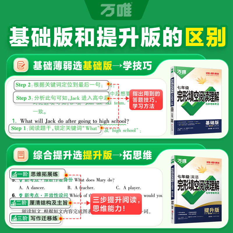 2026万唯中考初中英语完形填空与阅读理解七年级八年级九年级完型阅读组合训练题初一初二初三英语专项练习册万维中考英语复习资料
