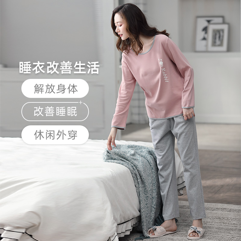 春秋纯棉冬季 家居服套装 长裤 大码 长袖 新一步睡衣女士2025年新款