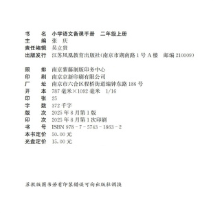 部编版 社 二年级上册 江苏凤凰教育出版 小学语文教师用书 教材教学参考 含光盘 人教版 2上 小学语文备课手册 2025秋