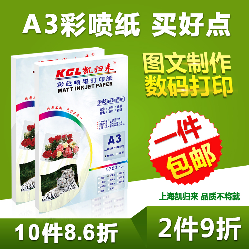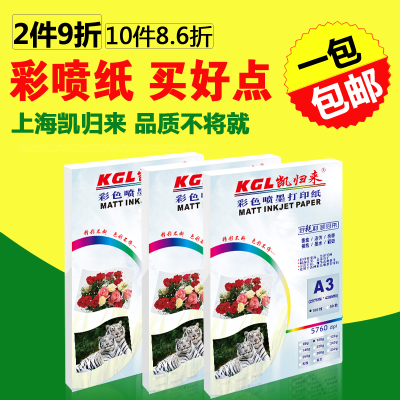 凯归来 108克A3彩喷纸单面哑光彩色打印机亚光喷墨简历宣传单页菜谱儿童宝宝成长手册画册diy绘本纸设计稿