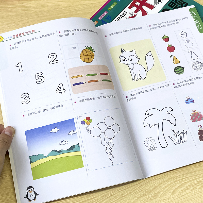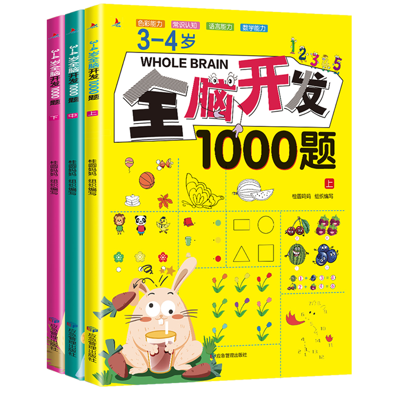 4岁全脑开发1000题幼儿益智书籍思维训练专注力练习册宝宝全脑开发大书儿童课堂早教闪卡全脑潜能开发教具全套游戏书 全套3本