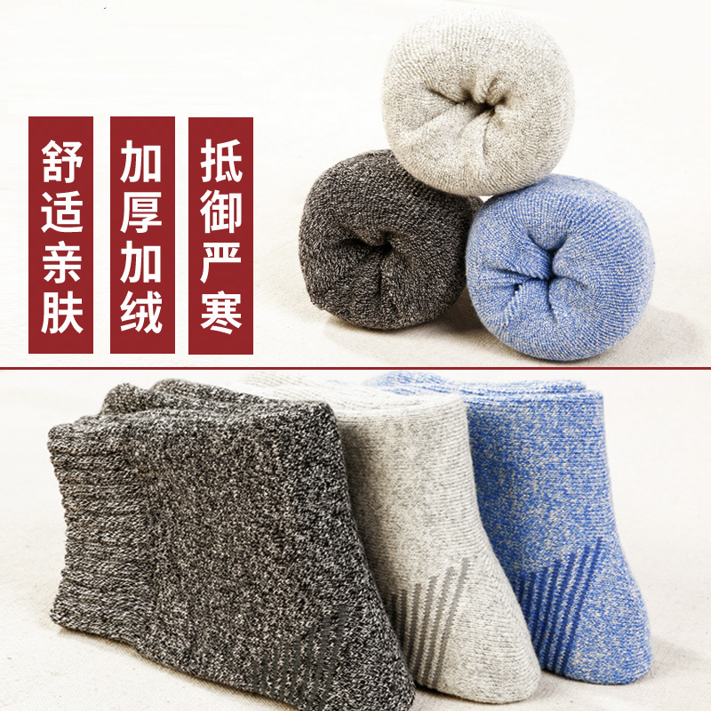 全棉线加厚 保暖加绒毛巾毛圈大码 冬季 袜子男中筒纯棉袜防臭秋冬款